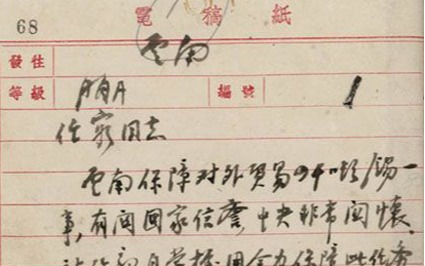 鄧小平親擬文電致云南省委書記、省軍政委員會副主席宋任窮" 云南保障對外貿易四干噸錫”